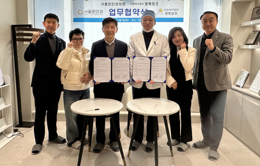 사회복지법인 행복창조에서는 지난 1월 7일, 서울온안과의원(대표원장 장인범)과 상호협력체계를 통한 효율적인 의료서비스 제공을 위해 업무협약을 체결하였습니다. 이번 업무협약은 사회복지법인 행복창조 및 산하시설을 이용하는 지역주민에게 의료서비스를 제공함에 있어 상호 공동 이익을 증진하거 협력하기 위한 목적으로 이루어졌으며, 이후 지역주민의 건강 증진을 위한 진료, 교육, 후원 활동 등을 진행하게 됩니다. 이번 업무협약을 통해 상호 업무 효율을 극대화하고 행복하고 안전한 은평구를 만드는 데에 앞장서겠습니다.